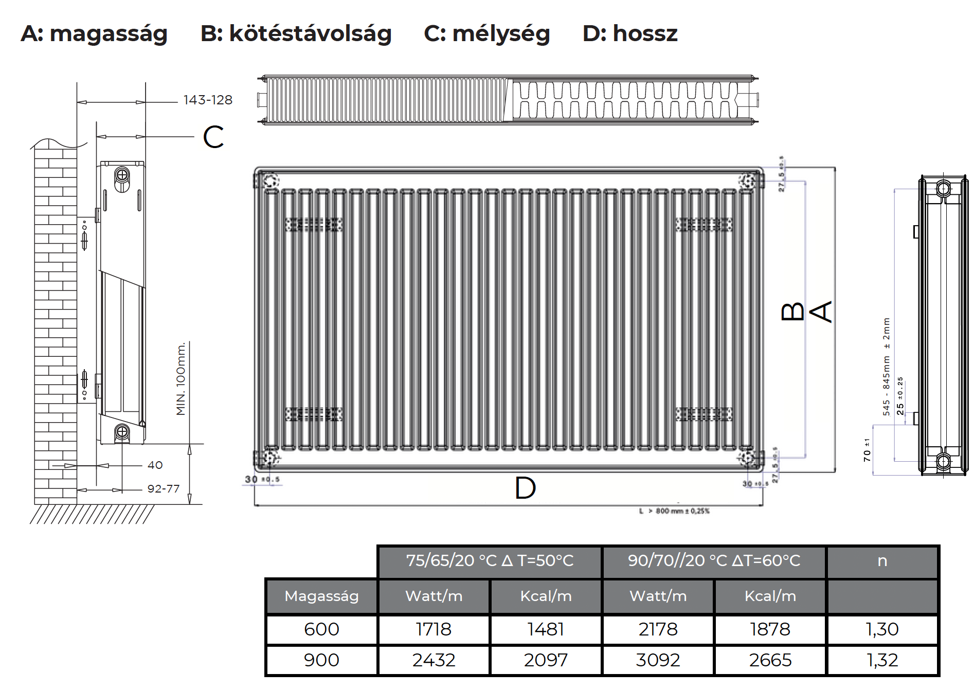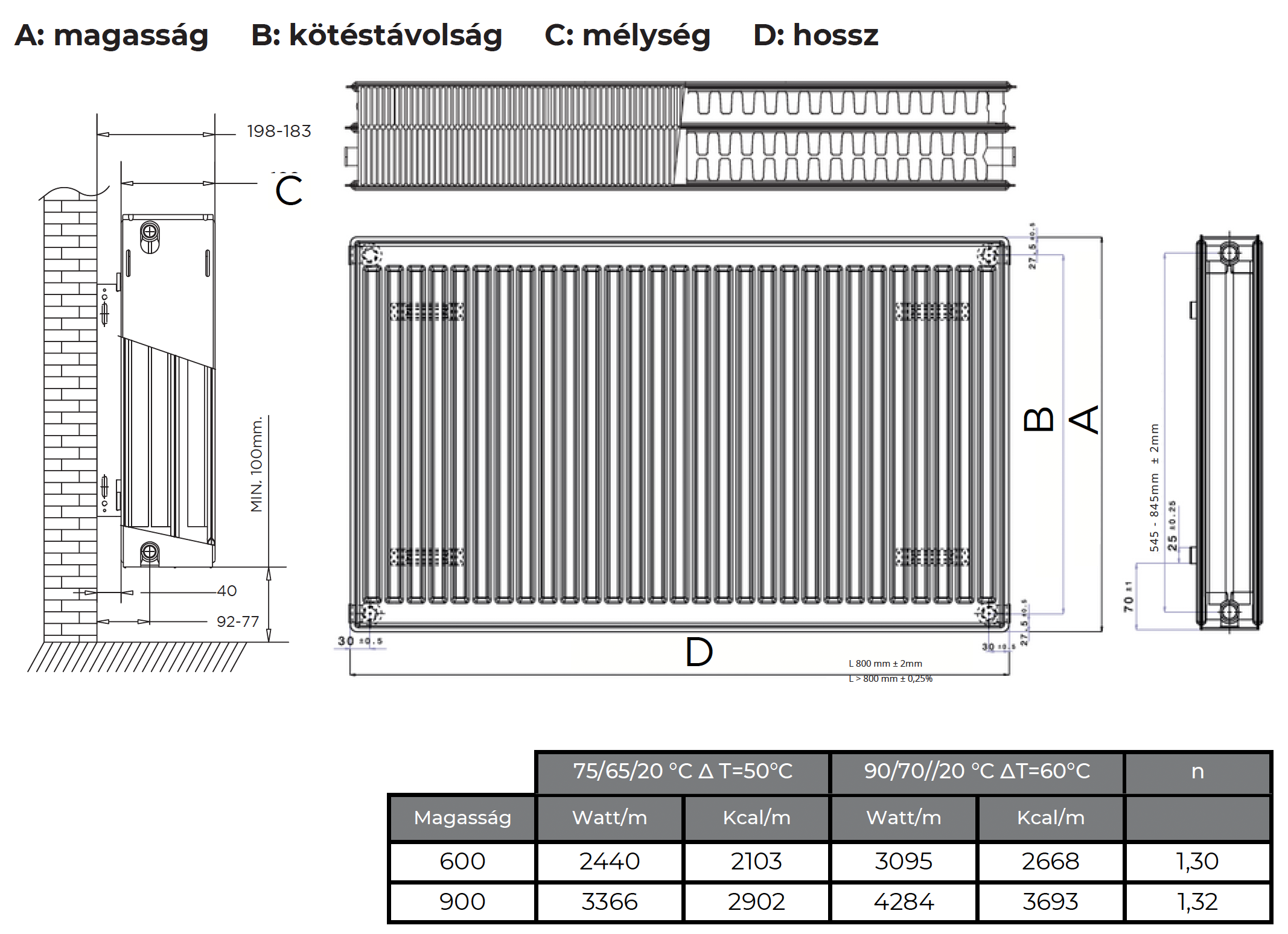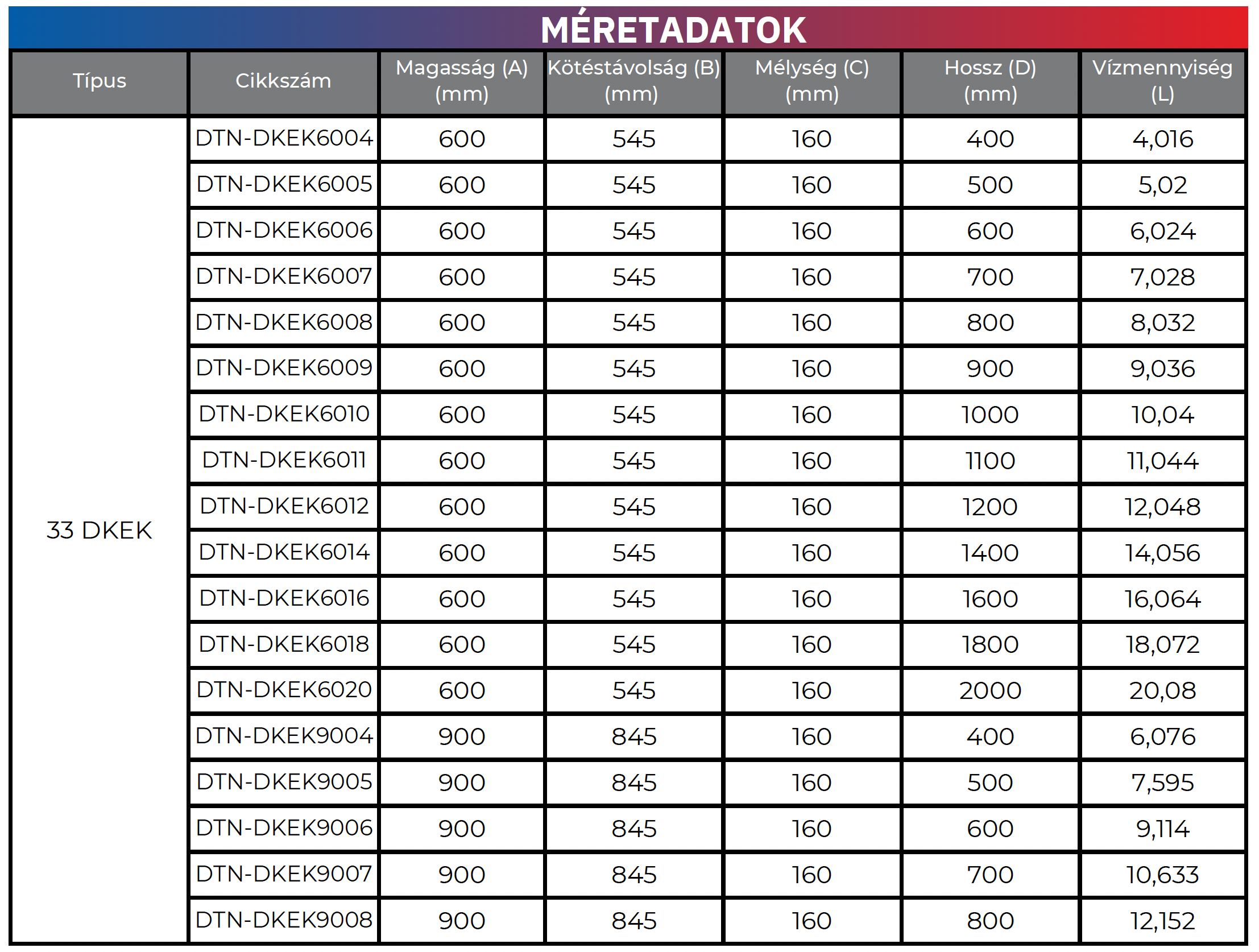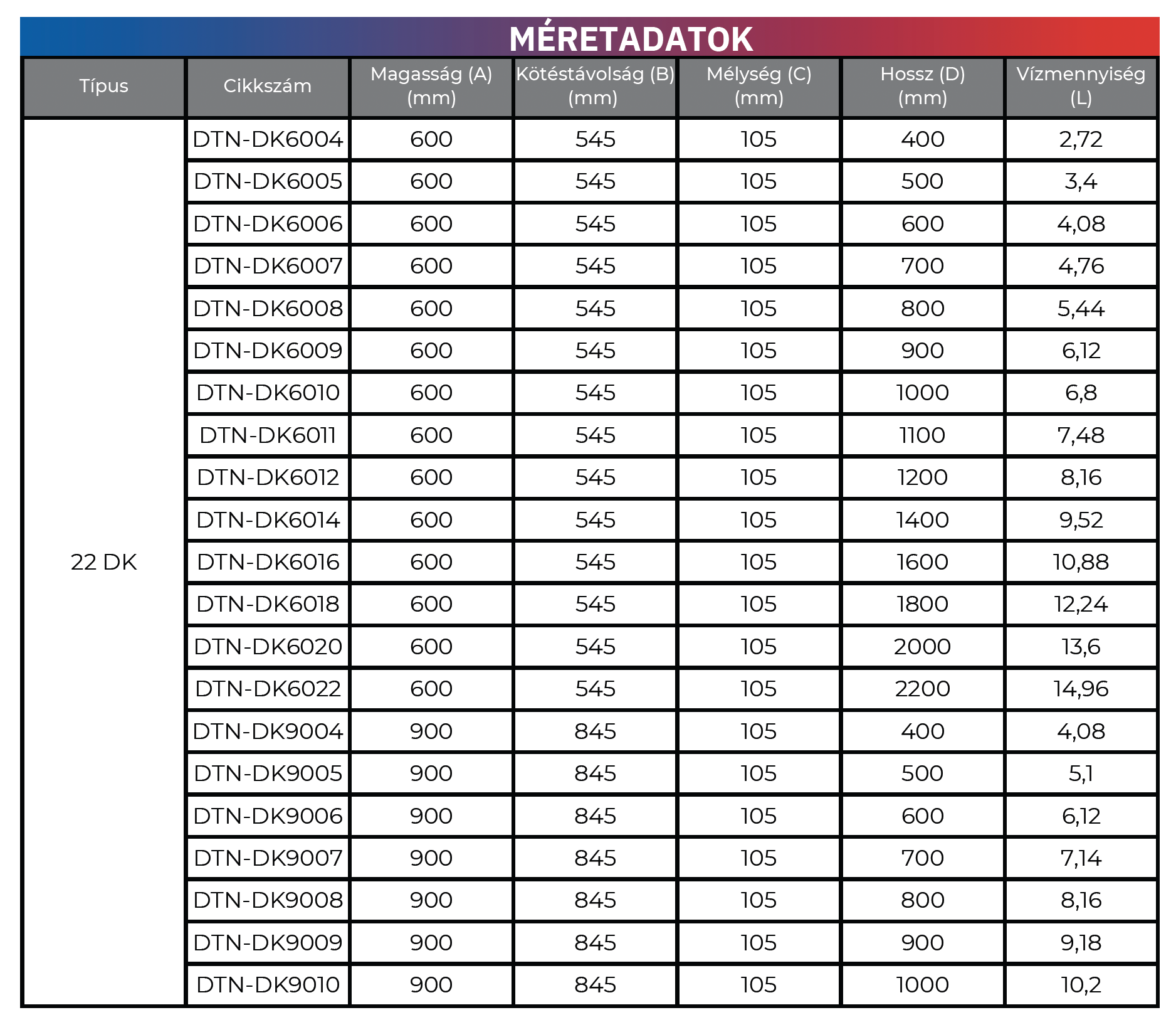 A teljesen automatizált rendszerrel gyártott Dunaterm Next radiátorok a következő méretválasztékban elérhetők: